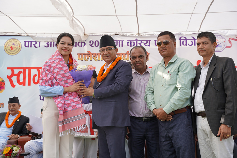 पेरिस प्यारालिम्पिक २०२४ मा नेपाललाई ऐतिहासिक पदक दिलाएकी तेक्वान्दो खेलाडी पलेसा गोवर्धनलाई पोखरा महानगरपालिकाले नगद सहित सम्मान गरेको छ ।