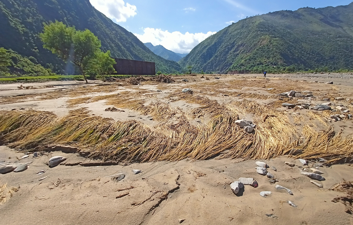 भर्खर पसाएको धान बाढीले जमिनसँगै कटान गरेपछि किसान दुःखी छन्। बालुवा, माटो, ढुङ्गा र मुढाले पुरेको, च्यापिएको धानको बाला हेर्दै यहाँका किसान अधिकांश समय पुर्पुरोमा हात राखेर बस्छन्। मन बुझाउने विकल्प भेट्दैनन्। किसानलाई सरकारसँग पनि केही आशा छैन।