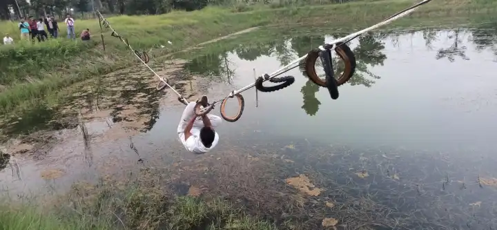 यो खेल पनि पोखरीमाथि खेलिने खेल हो । जहाँ खेलाडीले पोखरीमाथि १० फिटको उचाईमा राखिएको डोरीमा अड्काइएका रिङलाई एकपछि अर्को गर्दै समातेर निर्धारित ५० मिटरको दुरी पार गर्नु पर्नेछ । यसरी सबैभन्दा छिटो दुरी पार गर्ने प्रतियोगि पहिलो हुने पत्रकारसम्मेलनमार्फत् खेल संयोजक राम शुभागे थारुले जानकारी दिए ।