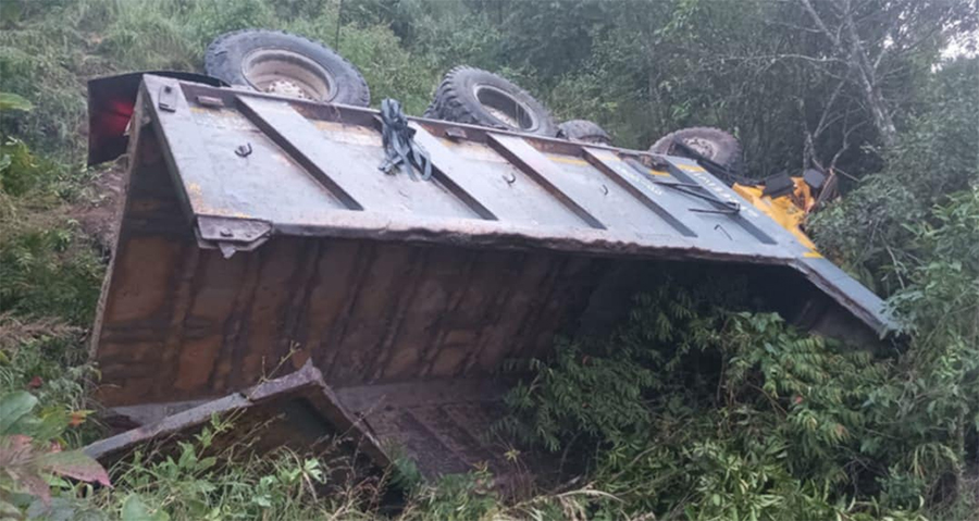चुनढुँगा लिन जान लागेको रा१ख १८५७ नम्बरको टिपर घोराही तापा सडकखण्ड अन्तर्गत जुम्लेपानी भन्ने ठाउँमा बिहीबार राति सडकबाट करिब १०० मिटर तल खसेको प्रहरीले जनाएको छ ।