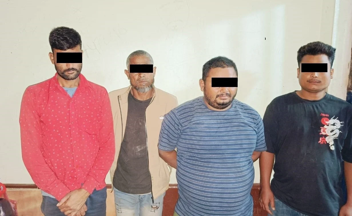 पक्राउ पर्नेमा मोरङको विराटनगर उपमहानगरपालिका–३ घर भएका ३८ वर्षीय हेमु श्रेष्ठ, २७ वर्षीय रमेश श्रेष्ठ, सुनसरी घर भएका इसाद आलम र २७ वर्षीय समिम आलम छन् । इलाका प्रहरी कार्यालय गोरुसिङ्गेबाट खटिएको टोलीले उनीहरूलाई पक्राउ गरेको हो ।