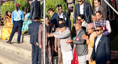 काठमाडौँ । राष्ट्रपति रामचन्द्र पौडेलले कमलपोखरी र गौरीघाट पुगेर सूर्यसहित छठी माताको पूजा आराधना गरी