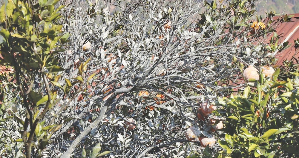 रिब्दीकोट गाउँपालिका–४, भैरवस्थान ढेकुलडाँडाकी सुन्तला किसान कदम थापाको सुन्तला बगानमा बोट सुकेको छ । अघिल्लो वर्ष २५ हजार आम्दानी गरेकी थापाले यस वर्ष एक रुपैयाँ पनि कमाइ नहुने गुनासो गरिन् ।