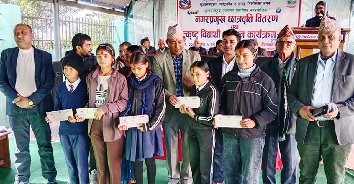तिलोत्तमा नगरपालिकाका प्रमुख रामकृष्ण खाँणले आफूले पाउने पारिश्रमिक तथा सेवा सुविधाको रकमबाट विद्यार्थीलाई छात्रावृत्ति बाँडेका छन् । प्रमुख खाँणले सोमबार एक कार्यक्रमको आयोजना गरी नगरभित्रका ४२ वटा सामुदायिक विद्यालयका १४६ विद्यार्थीहरुलाई आफ्ले वर्षभरि पाउने तलब र अन्य पारिश्रमिक रकमबाट दरजनही ५ हजारका दरले ७ लाख ३० हजार छात्रबृति बाँडेका हुन् ।