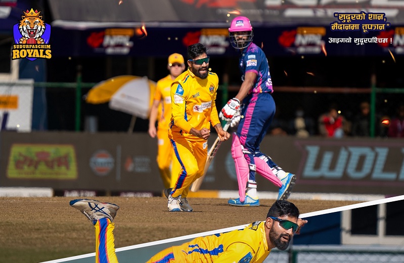 नेपाल प्रिमियर लिगमा सुदूरपश्चिम रोयल्सले जनकपुर बोल्ट्समाथि ८ विकेटको शानदार जित हात पारेको छ। विनोद भण्डारी र कप्तान दिपेन्द्रस्हि ऐरी क्रमश ५८ र २० रनमा अविजित रहँदै १८।३ ओभरमा १४१ रन बनाउँदै जित आफ्नो पक्षमा पारेका हुन्।