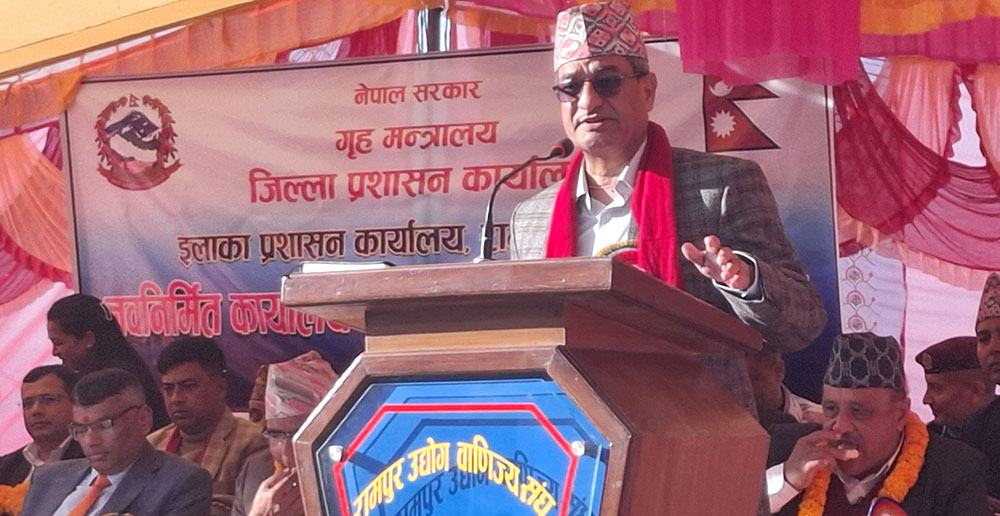 इलाका प्रशासन कार्यालय रामपुरको नवनिर्मित भवनको उट्घाटन गर्नुहुँदै मन्त्री लेखकले शान्ति सुरक्षा भएन भने अन्य कुनै पनि सेवा प्रदान गर्न नसकिने बताउनुभयो।