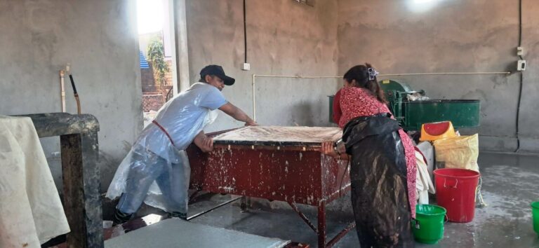 भारतको हरिद्वारबाट आएका दक्ष प्रशिक्षकहरूले स्थानिय युवाहरूलाई तालिम प्रदान गरेपछि कागज उत्पादन सुरु भएको हो। उद्योगमा गणेश चौधरी, पार्वती पौडेल र रोशनी चौधरीले दैनिक रूपमा कागज बनाउने कार्य गरिरहेका छन्।