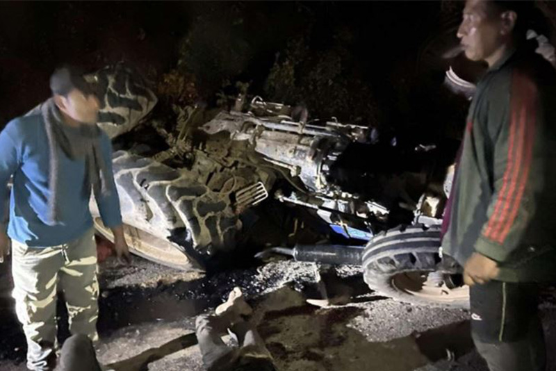 सिरक–डसना बनाउने मेसिन जोडेको ट्याक्टर दुर्घटनामा परी बाराको कलैया उपमहानगरपालिका–१० का २४ वर्षीय अर्जुन शाह र कलैया–११ का २६ वर्षीय सलाम मुदिन मन्सुरी गम्भिर घाइते छन्। दुबै जनाको कालिगण्डकी अस्पताल मिर्मी स्याङ्जामा सामान्य उपचार पश्चात थप उपचारका लागि लुम्बिनी मेडिकल कलेज प्रभास पाल्पा पठाइएको प्रहरीले जनाएको छ। गढीमाई नगरपालिका–११ का १४ वर्षीय सिकिन्दर यादब भने सकुशल रहेका छन्।