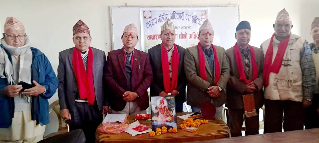 कश्यप गोत्रिय अधिकारी बंश प्रतिष्ठान कपिलवस्तुको चौथो अधिवेशन बुधबार सम्पन्न भएको छ । कपिलवस्तुको बुद्धभूमि २ गोरुसिंगेमा सम्पन्न साधारण सभा तथा चौंथो अधिवेशनले दुर्गा प्रसाद अधिकारीको अध्यक्षतामा १३ सदस्यीय नयाँ जिल्ला कार्यसमिति चयन गरेको छ । जसको उपाध्यक्षमा मणि अधिकारी, अञ्जु अधिकारी, सचिवमा बिजय अधिकारी, सहसचिव हरि अधिकारी, कोषाध्यक्ष हिमाकान्त अधिकारी, सदस्यहरुमा पुनाराम अधिकारी, होमनाथ अधिकारी, दुर्गा अधिकारी, राम प्रसाद अधिकारी, कृष्ण अधिकारी, विष्णु अधिकारी र हरि अधिकारी (गोरुसिंगे) रहेका छन् ।
