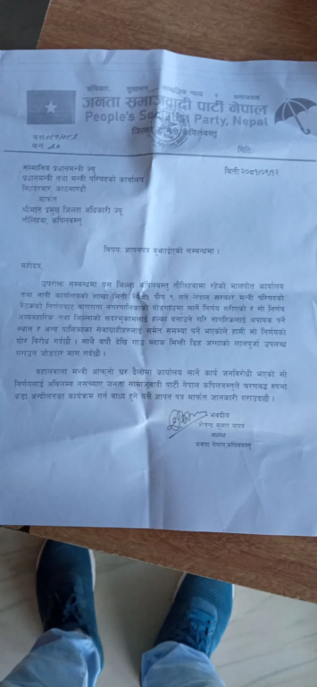 टोलीले प्रधानमन्त्री तथा मन्त्रीपरिषदको कार्यालयसम्म पुग्ने गरी प्रजिअमार्फत् ज्ञापनपत्र समेत बुझाएको हो । सो निर्णय अबिलम्ब नसच्चाइए कडा आन्दोलन गर्ने पार्टीले चेतावनी समेत दिएको छ ।