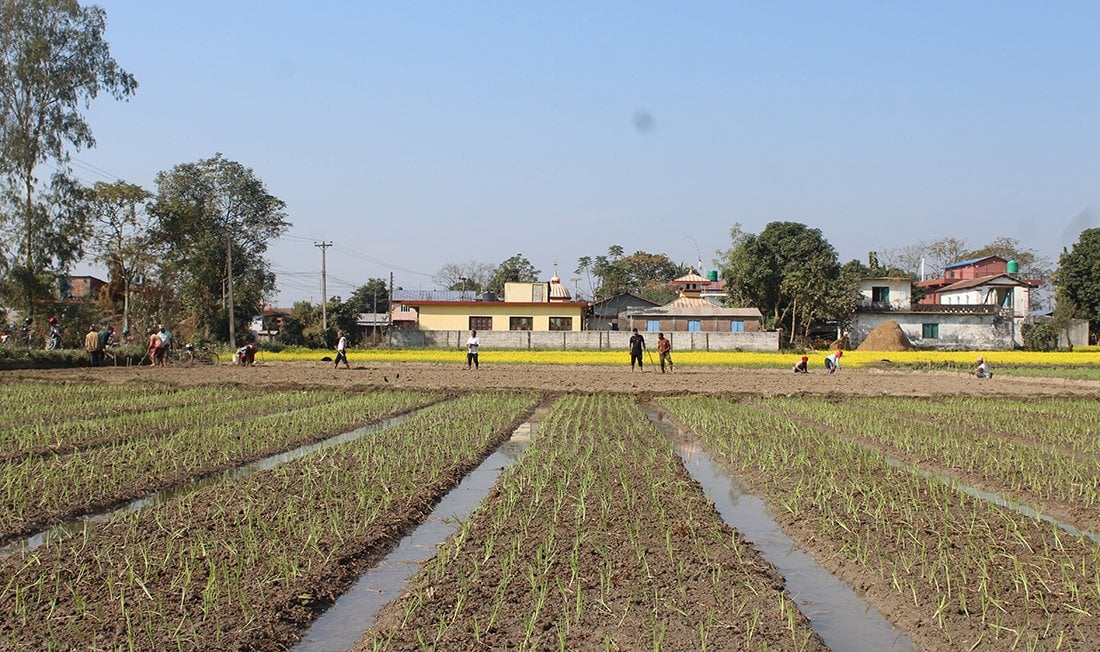 ‘समूहका किसानले दैनिक श्रमदान गरी प्याज रोपेका छन्, अब समयअनुसार सिँचाइ र गोडमेल गर्नुपर्छ’, अध्यक्ष बरालले भने, ‘बीउ उमारेर नेपाली र भारतीय प्रजातिको प्याजको बिरुवा रोपेका छौँ, बाँकी बिरुवा अन्य किसानले खरिद गरेका छन् ।’