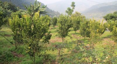 मिला दरै, तनहुँ ।“बस्ने घर नभए पनि बाँझो जमिनलाई उपयोग गर्दै सुन्तलाखेतीमा लागेको छु”, तनहुँको