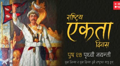 काठमाडौं । ३०३ औँ पृथ्वीजयन्ती तथा राष्ट्रिय एकता दिवस। नेपालको एकीकरण गर्ने पृथ्वीनारायण शाहको सम्झना