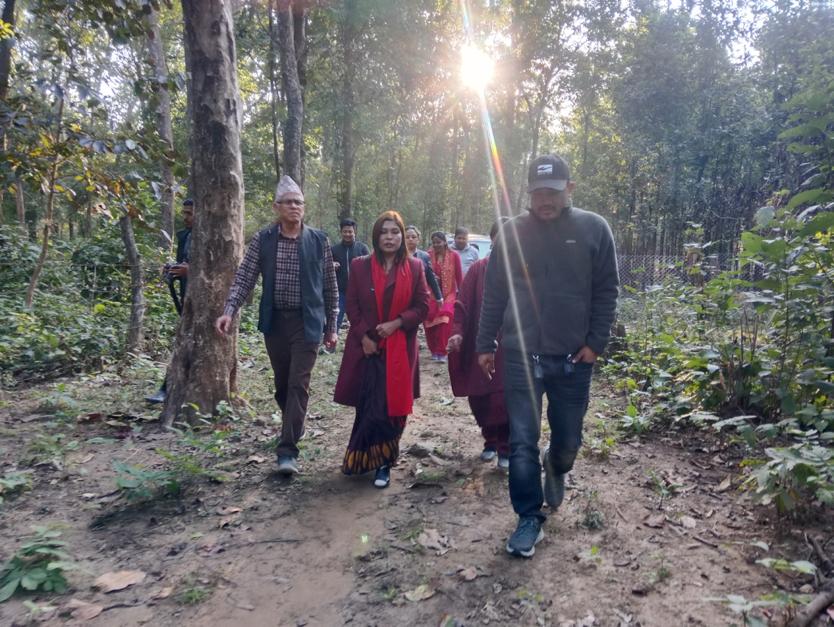 संघीय वन तथा राज्य मन्त्री रुपा बिकले श्रृङ्गीघाट सामुदायिक वन उपभेक्ता समूहको वन क्षेत्रको अवलोकन गरेकी छिन् । सामुदायिक वनको अवलोकनका क्रममा समूहका अध्यक्ष ठकुरीले वनका अगामी योजनाबारे राज्य मन्त्री बिकलाई अवगत गराएका थिए । राज्य मन्त्री विकले आगामी योजनालाई विशेष चासो लिँदै संघीय वन मन्त्रालयले सहयोग गर्ने प्रतिबद्धता व्यक्त गरिन ।