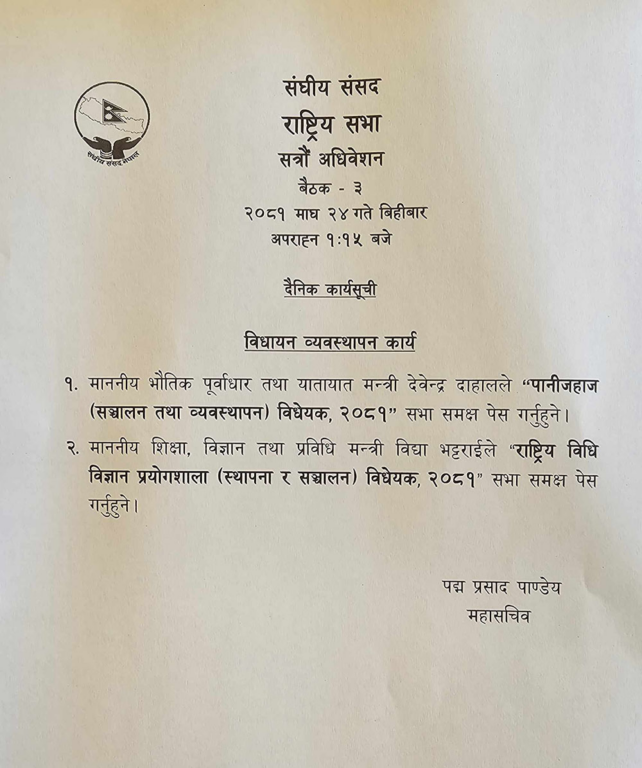 राष्ट्रिय सभाको फेरिएको कार्यसूची: