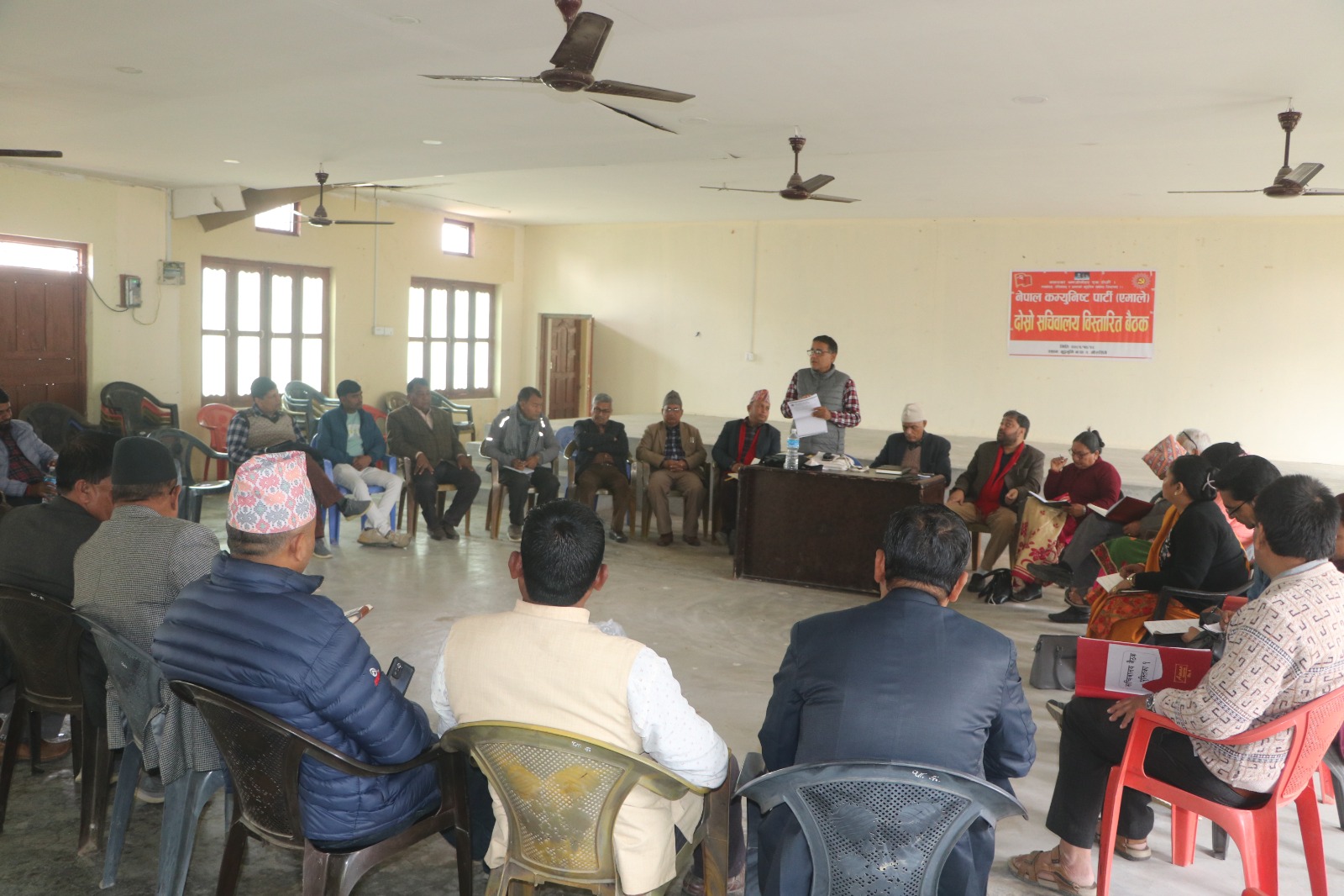 वैठकमा एमाले लुम्बिनी प्रदेश कमिटी सचिवालय सदस्य जंजिर प्रसाद चौधरी, प्रदेश कमिटी सदस्य डम्मर शर्मा, नेत्रराज अधिकारी, द्रोणराज सुवेदी, शारदा शर्मा, गोपाल थापा, लाल बहादुर सुनार, जगदिश प्रसाद गुप्ता, जिल्ला सचिवालयका सदस्य, पालिका अध्यक्ष, इन्चार्ज लगायतले मन्तब्य राखेका थिए ।