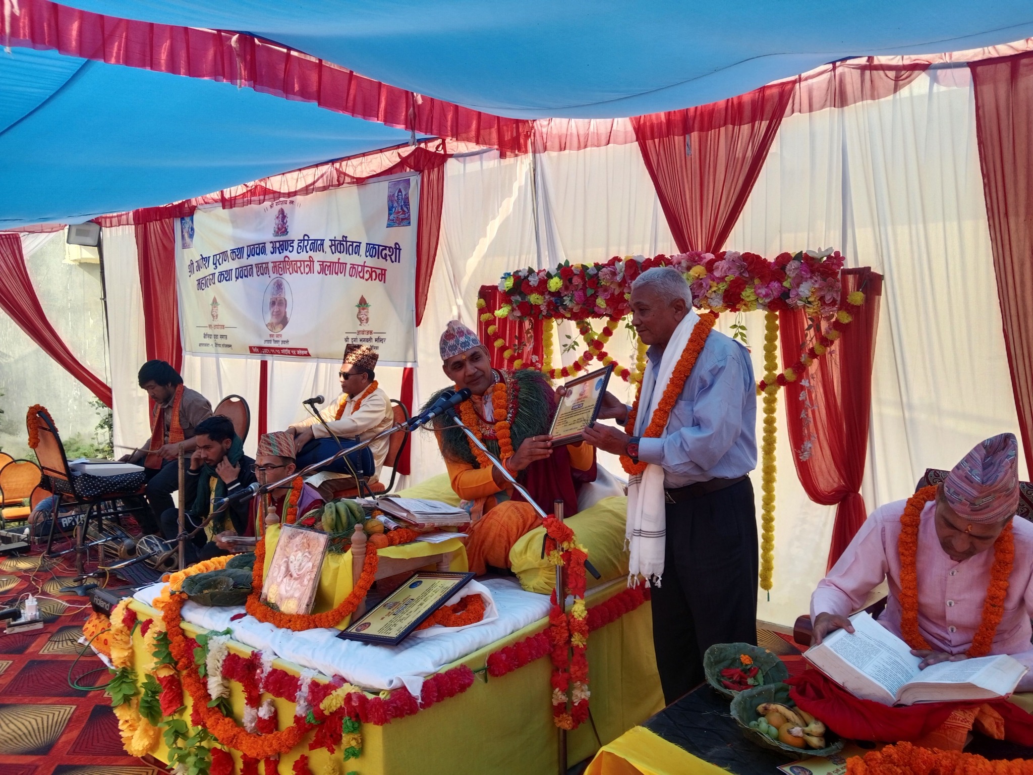 धार्मिक अनुष्ठानमा कथा व्यासका रूपमा प्रख्यात आचार्य विष्णु ज्ञवालीले दैनिक कथा प्रवचन दिदै आउनु भएको छ। पाँच दिनसम्म चल्ने संगीतमय श्री गणेश पुराण कथा प्रवचनले भक्तजनहरूलाई धार्मिक ज्ञान तथा आध्यात्मिक लाभ प्रदान हुने आचार्य विष्णु ज्ञवालीले बताउनुभयो । एकादशी, महाशिवरात्रीको अति उत्तम समय भएकाले श्री गणेश पुराण लगाएर स्थानीय भक्तजनलाई पवित्र बनाउने महान कार्य गरेकोमा मन्दिर व्यवस्थापन समिति, बैरिया युवा समाज सहित आयोजक सहयोगी संस्थालाई धन्यवाद दिनुभयो ।