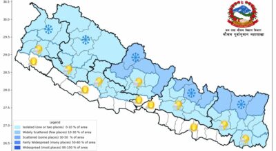 काठमाडौं । आज पनि पहाडी भू-भागमा मौसम बदली भएको छ । पश्चिमी वायूका साथै स्थानीय