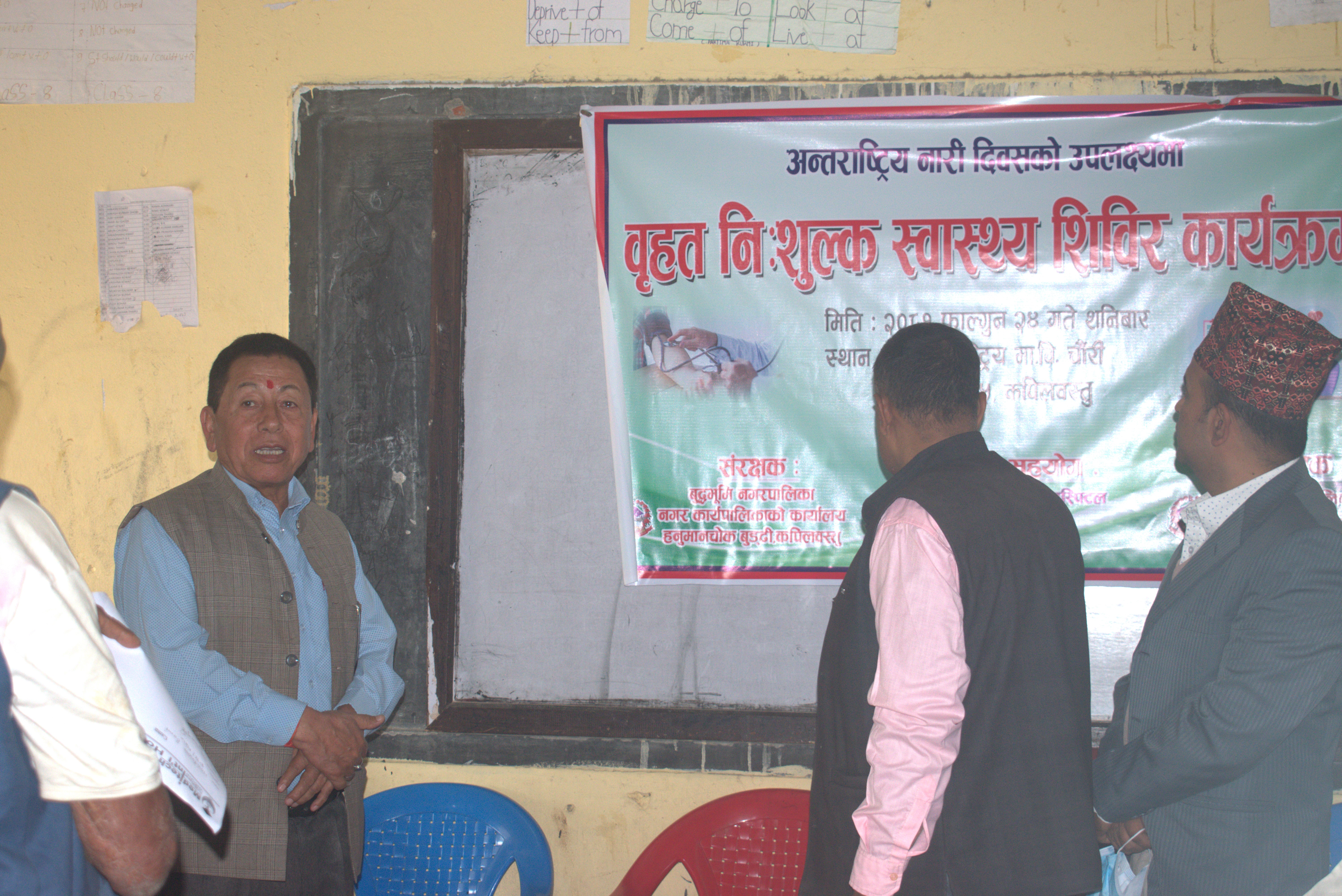कार्यक्रममा बोल्दै वडा अध्यक्ष रोम थापाले स्वास्थयनै सबैभन्दा ठूलो धन भएपनि यहाँका नागरिकले स्वास्थ्यलाई ध्यान नदिने गरेको बताए । ‘बिरामी अन्तिम अवस्थामा भएपछि मात्र अस्पताल जानुहुन्छ जसले गर्दा झन समस्या हुन्छ उनले भने ।’ साथै यहि चैत्र ४ गते वडाले निःशुल्क आखाँ शिविर राखेको भन्दै शिविरमा सहभागी भएर आँखा परिक्षण गराउन पनि सबैमा आग्रह गरे । अध्यक्ष थापाले भने, ‘म जनताको सेवामा समर्पित हुन आएको हु, तपाईहरुको सेवा गर्ने हुटहुटी छ र निरन्तर जनताकै सेवामा लागि रहने छु ।’