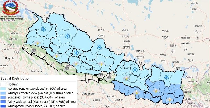 भोलि कोशी, गण्डकी र बागमती प्रदेशका केही ठाउँमा वर्षाको सम्भावना रहेको महाशाखाले जनाएको छ । मौसमी प्रणाली पश्चिमबाट पूर्वतर्फ सर्दै गरेको र भोलिदेखि मौसममा सुधार आउने मौसमविद् अर्यालले जानकारी दिनुभयो ।