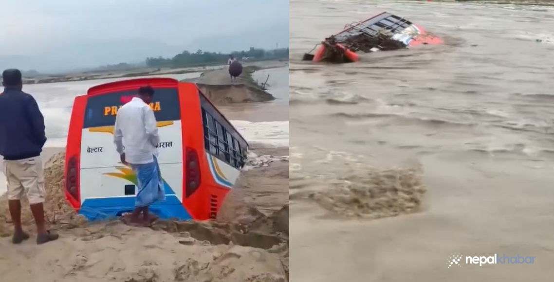 ‘जन्ति पुर्‍याएर फर्किएको गाडी बाढीले लेदो थुपारेको ठाउँमा भासिएछ,’ उनले भनिन्, ‘बसमा क्षति पुगेको छ अरु क्षति केही छैन।’