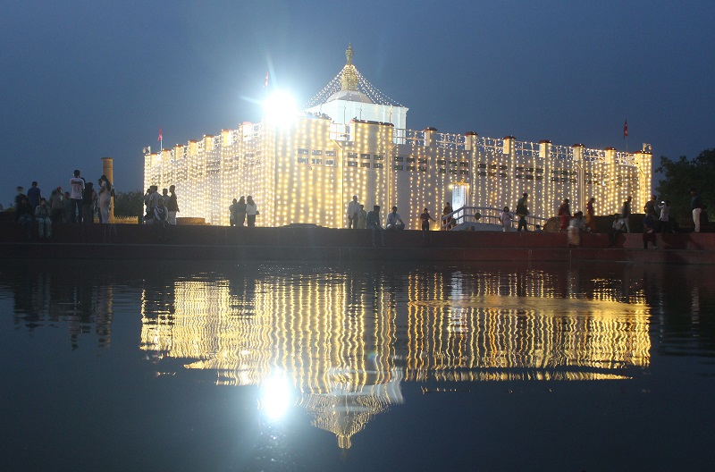 मायादेवी मन्दिर परिसर, पवित्र पुष्करिणी पोखरी र वरपरका क्षेत्रहरूलाई रङ्गीबिरङ्गी बत्तीहरूले झिलीमिली पारिएको छ । विभिन्न बौद्ध स्तूपाहरू र विहारहरूलाई पनि आकर्षक ढङ्गले सजाइएको छ ।