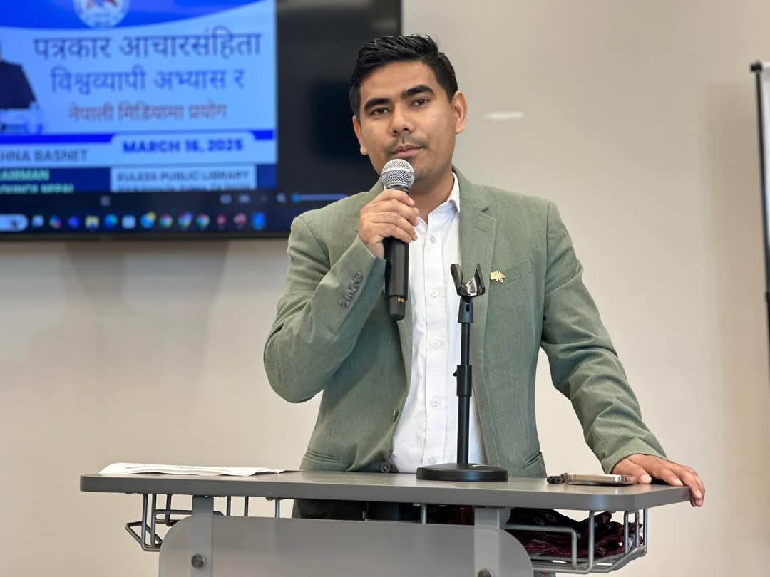 कपिलवस्तु । नेपाल अमेरिका पत्रकार संघ (नेजा)को अध्यक्षमा सुरज भण्डारी निर्विरोध निर्वाचित भएका छन् । अमेरिकाको लस भेगासमा आइतबार सम्पन्न संघको नवौँ महाधिवेशनबाट भण्डारीको नेतृत्वमा १७ सदस्यीय कार्यसमिति सर्वसम्मत रूपमा चयन गरिएको हो । उनी यसअघि निर्वाचनबाट अध्यक्षमा निर्वाचित भएका थिए ।