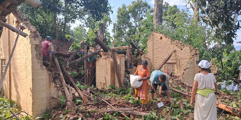 नेउलापुर गाउँका रामकुमार थारुको घरमाथि रहेको सालको रुख ढल्दा घर पूर्णरुपमा क्षति भएको छ भने उहाँका छोराहरु ५ वर्षीय आदित्य थारु र १० वर्षीय अमित थारु घाइते भएका स्थानीय बडघर पाँचुराम थारुले जानकारी दिनुभयो ।