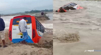 उदयपुर ।उदयपुरमा जन्ती पुर्याएर फर्किएको बसलाई नदीमा भासिएको छ। जिल्लाको चौदण्डीगढी नगरपालिका–५ स्थित त्रियुगा नदीको