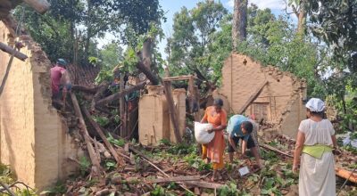 बर्दिया । बर्दियाको ठाकुरबाबासहित आसपास क्षेत्रमा हिजो दिउँसोको हावाहुरीले क्षति पुर्याएको छ। हावाहुरीले घरमा रुख