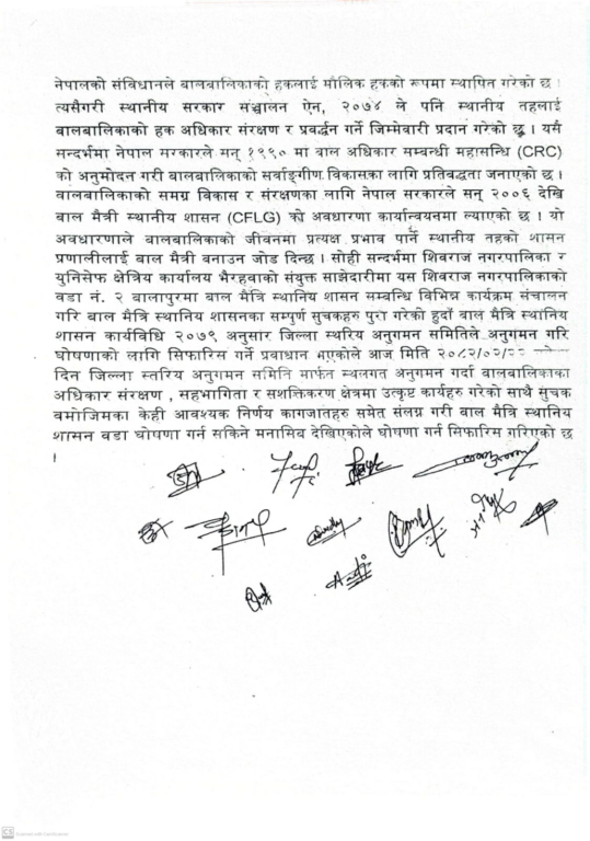 कपिलवस्तुको शिवराज नगरपालिका वडा नम्बर २ लाई बालमैत्री स्थानीय शासन वडा घोषणा गरिने भएको छ । बालमैत्री स्थानीय शासन कार्यबिधि २०७९ अनुसार वडा नम्बर २ ले सम्पूर्ण सुचकहरु पुरा गरेकाले जिल्ला स्तरीय अनुगमन समितीले बिहिबार बालमैत्री स्थानीय शासन वडा घोषणाका लागि अनुमति दिएको हो ।