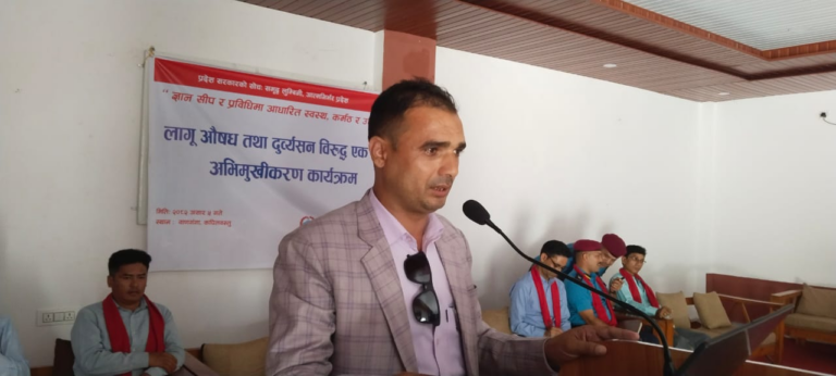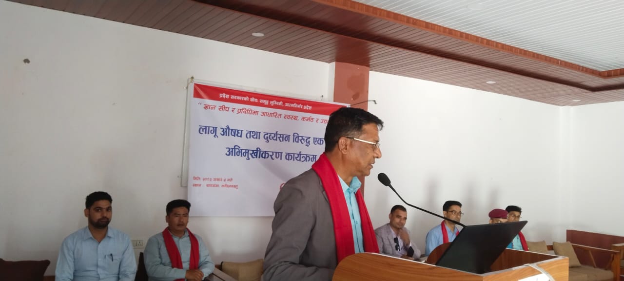प्रहरीले लागु औषध विरुद्ध विभिन्न सचेतना मुलक कार्यक्रम गर्दै आएको भन्दै समाजमा रहेका त्यस्ता प्रयोग कर्ताको पहिचान परिवारबाटै गर्न सकेमा सहज हुने बताए । कार्यक्रममा प्रदेश युवा परिषद विकास समितीका कार्यबाहक उपाध्यक्ष हंशराज खनालले परिषदले समाजका युवालाई लागु औषधबाट बचाउँदै समाजमा रहेको विबृती र विसंगतीको अन्त्य गर्ने उद्देश्यले काम गरेको बताए ।