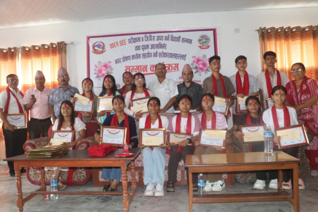 बाणगंगाद्धारा एसइईमा ४ जिपिए ल्याउने विद्यार्थीलाई सम्मान