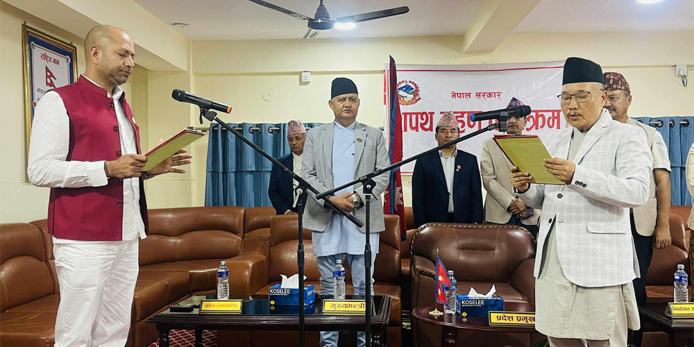 मुख्यमन्त्री चेतनारायण आचार्य, पूर्व मुख्यमन्त्री डिल्लिबहादुर चौधरी, प्रदेशका मन्त्री तथा उच्च पदस्थ पदाधिकारीहरुको उपस्थितीमा मन्त्री पाण्डेले प्रदेश प्रमुखको कार्यालय बुटवलमा सोमबार शपथ ग्रहण गर्नुभएको छ ।