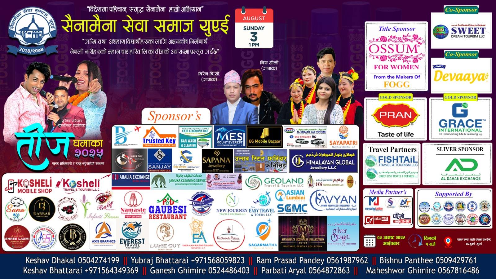 आज यूएईमा सैनामैना सेवा समाजको तीज धमाका २०२५ प्रस्तुती हुदै