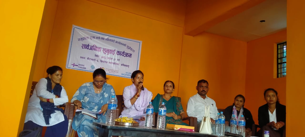 टेवा संस्थाका कार्यक्रम अधिकृत सरस्वती श्रेष्ठले कार्यक्रमको उद्देश्य, महिलाहरूको हक अधिकार र समाजमा रहेका अपाङ्गतालाई समेट्नु, महिलालाई आर्थिक सशक्ति करणमा जोड्नु , महिला उद्यमशीलता कसरी बढाउने भन्ने रहेको स्ष्पट पर्नु भएको थियो । साउमी फाइनान्स, टेवा , नमुना एकिृकत विकास परिषद, यूएन उमनका सहयोगमा सामुदायिक सुरक्षा जालो तथा महिलावादी आन्दोलनको सुदृढीकरणका लागि सार्वजनिक सुनुवाई कार्यक्रम गरिएको थियो । कार्यक्रमको सञ्चालन सामुदायिक टेलिभिजनका समाचार शाखा प्रमुख सरिता थारुले गर्नु भएको थियो ।