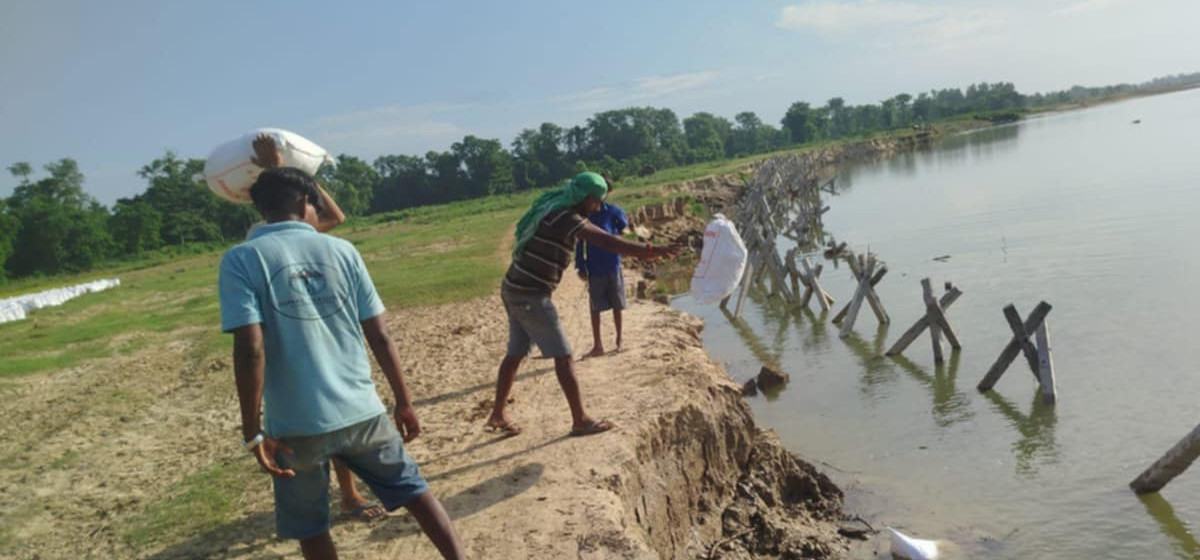 कपिलवस्तुको महाराजगंज नगरपालिका वडा नम्बर १० हदौना गाउँलाई सुरक्षित राख्न यस बर्ष फेरी अस्थायी तटबन्ध निर्माण गरिएको छ ।