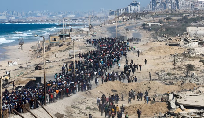 इजरायल र हमास लडाकु समूहबीच युद्धविराम घोषणापछि हजारौं विस्थापित प्यालेस्टिनी आफ्नो घर बस्तीमा फर्कन थालेका छन् । गाजा शहरबाट विस्थापित भएका हजारौं प्यालेस्टिनी परिवार दक्षिण गाजाबाट फेरि उत्तरतर्फ फर्किन थालेका बीबीसीले जनाएको छ । कतिपय विस्थापितहरू आफ्ना सरसामान बोकेर २० किलोमिटरभन्दा लामो पैदल यात्रा गरी उत्तरी गाजातर्फ फर्किरहेका छन् ।