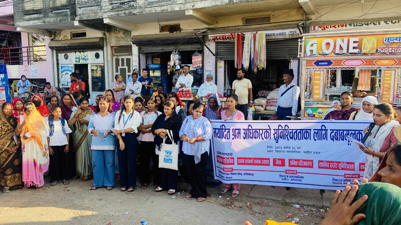 कपिलवस्तुको शिवराज चन्द्रौटामा मर्यादित श्रम अधिकारको सुनिश्चितताको लागि सचेतनामूलक र्‍याली सम्पन्न भएको छ। राज्यले तोकेको न्यूनतम पारिश्रमिक कार्यान्वयन गर्नका लागि श्रमिकहरुले आफनो हक अधिकार पाउनु पर्ने दावी गरेका हुन् । श्रमिकहरुले स्थानीय पालिका सहित ३ तहका सरकारले श्रम एेन कार्यान्वयनमा विशेष ध्यान दिनुपर्ने जोड दिएका छन् । सभामा श्रमिक महिलाहरूले राज्यले तोकेको न्यूनतम पारिश्रमिक पाउनुपर्ने, कार्यस्थलमा सुरक्षित हुनुपर्ने, र श्रमशोषणमुक्त नगरपालिका घोषणा गर्नुपर्ने माग राखेका थिए।