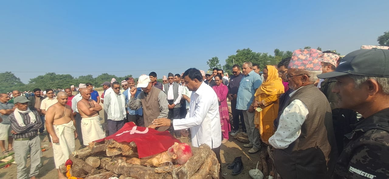 लक्ष्मणघाटमा आयोजित अन्त्येष्टि तथा श्रद्धाञ्जली कार्यक्रममा नेकपा एमालेका पोलिटब्युरो सदस्य खिमलाल भट्टराई, पूर्वमन्त्री तथा केन्द्रीय सदस्य बलराम अधिकारी, जिल्ला इन्चार्ज गिरधारीलाल न्यौपाने, राष्ट्रिय सभा उपाध्यक्ष विमला घिमिरे, नगरप्रमुख चक्रपाणी अर्याल, लगायत नेताहरूको उपस्थिति थियो ।