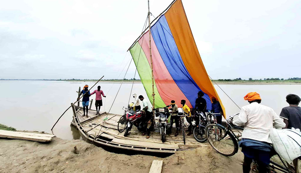 डुङ्गा राखिएका छन् । १० वर्षदेखि डुङ्गा चलाउँदै आउनुभएका माझी गुड्डु मल्लाहले नदी तर्दातर्दै तीव्र गतिमा उर्लेर आउने बाढीले डुङ्गा बगाउँदा धेरै पटक जीवन जोखिममा परेको स्मरण गर्नुभयो ।