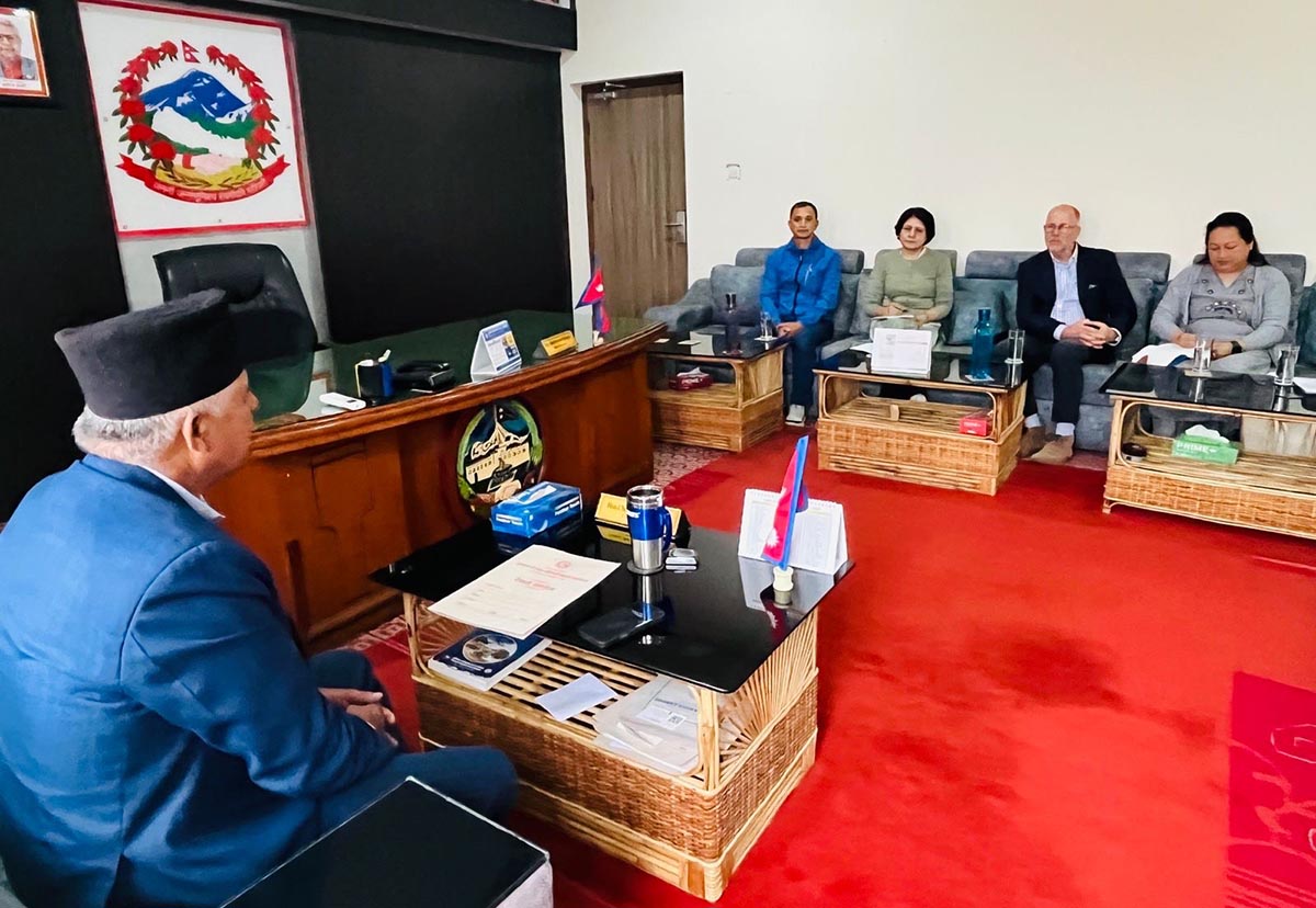लुम्बिनी प्रदेशका मुख्यमन्त्री चेतनारायण आचार्य र बेलायती दूतावासका सुशासन तथा सामाजिक विकास विभागका प्रमुख एन्ड्रु लङबिच भेटवार्ता भएको छ। मुख्यमन्त्री तथा मन्त्रिपरिषद्को कार्यालय देउखुरीमा मङ्गलबार भएको भेटमा प्रदेशमा सुशासन सुदृढीकरण, सङ्घीयताको कार्यान्वयन र विकास सहकार्यका विषयमा विस्तृत छलफल भएको छ।