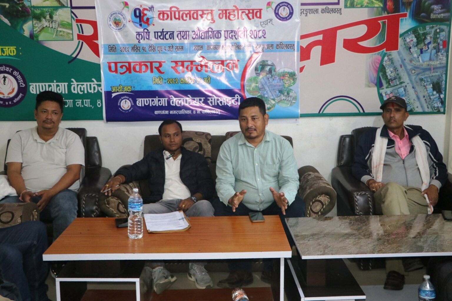 बाणगंगा नगरपालिका–४ जीतपुरस्थित बुद्धरंगशालामा सञ्चालन हुने १६औं कपिलवस्तु महोत्सवको तयारीको क्रममा आयोजित पत्रकार सम्मेलनमा कार्यक्रममा आयोजक संस्था बाणगंगा वेलफेयर सोसाइटीका अध्यक्षसहित कपिलवस्तु उद्योग बाणिज्य संघका अध्यक्ष गणेश बहादुर क्षेत्री, निवर्तमान अध्यक्ष डोलकराम घिमिरे, पूर्वअध्यक्ष विष्णु प्रसाद न्यौपाने, युवा समाजसेवी शक्तिसिंह ठकुरी, नेपाल पत्रकार महासंघका केन्द्रीय सदस्य विकास बन्जाडे, कपिलवस्तु पत्रकार महासंघका पूर्व अध्यक्ष मनोज पौडेल, किरणमान बज्राजार्य लगायत जिल्लाका पत्रकारहरुको उ उपस्थिति रहेको थियो।