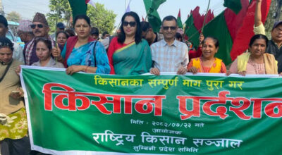 दाङ। धानको मूल्य वृद्धि र समर्थन मूल्य कायम गर्नुपर्ने मागसहित राष्ट्रिय किसान सञ्जाल लुम्बिनी प्रदेश