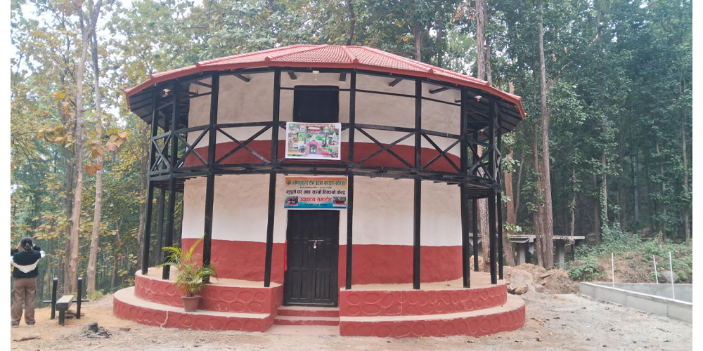 तिलोत्तमा (रूपन्देही) । नेपालको पहाडी क्षेत्रमा देखिने परम्परागत कुँडेले घर अब बुटवलको फूलबारीमा देख्न सकिन्छ । आर्कषक देखिने कुँडुले घर गोलाकार, माटोले लेपिएको र खरले छाएर बनाइन्छ ।