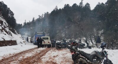 काठमाण्डौ । रुकुम पूर्वमा हिमपातका कारण मध्यपहाडी लोकमार्ग अवरुद्ध भएको छ । हिमपातका