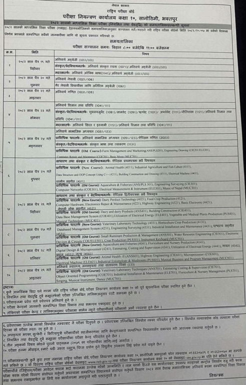 बुधबार बोर्डले चैत १९ देखि २९ गतेसम्म परीक्षा हुने गरी तालिका सार्वजनिक गरेको हो ।