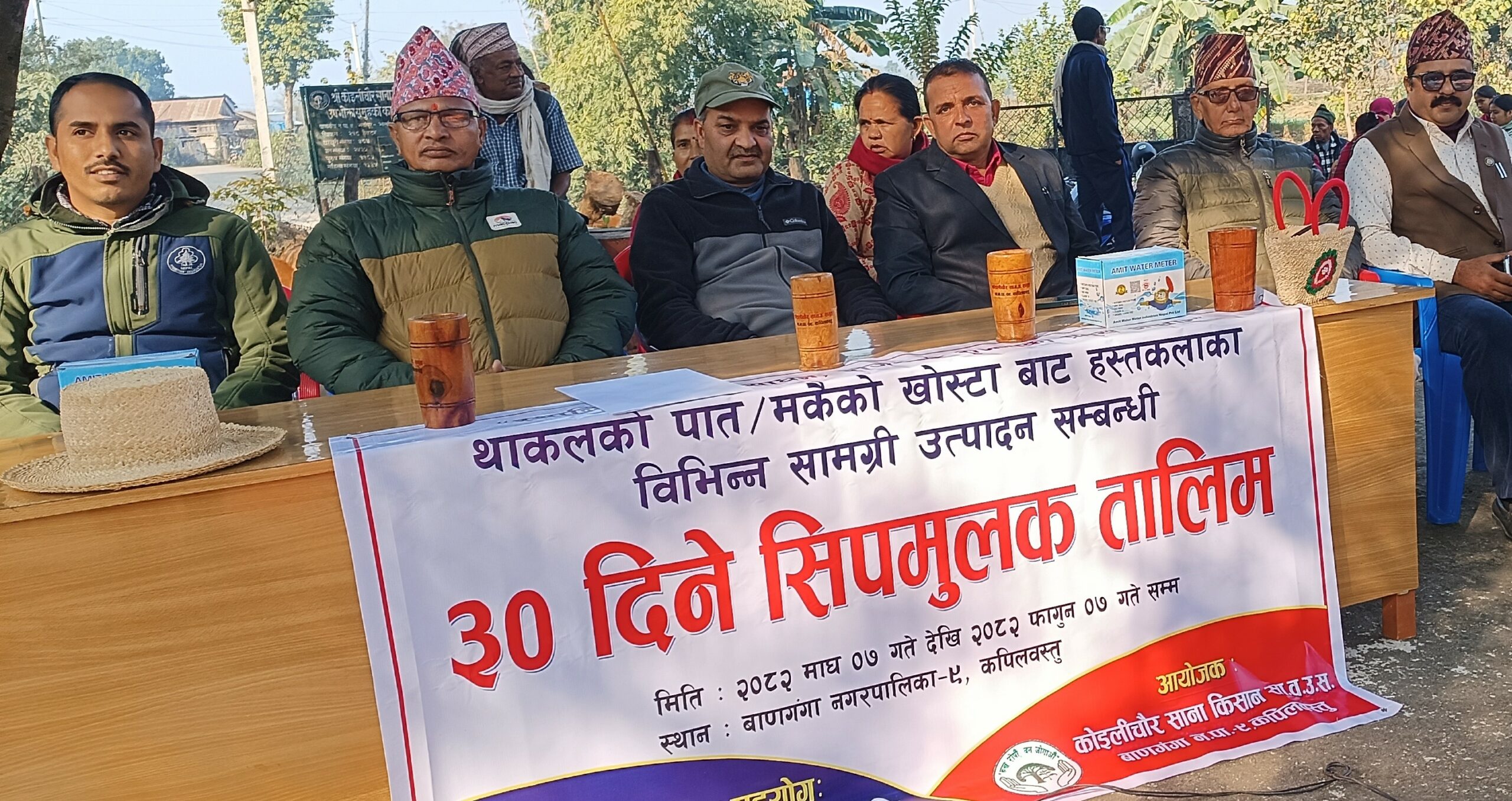 कोइलिचौर साना किसान सामुदायिक वनको आयोजना तथा ओम राजश्री मल्टिएग्रो प्रा ली काठमाडौंको प्राविधिक सहयोगमा थाकलको पात र मकैका खोस्टाबाट बन्ने हस्तकला सामग्री उत्पादनसम्बन्धी ३० दिने सीपमूलक तालीम तथा निःशुल्क खानेपानी मिटर वितरण कार्यक्रम भव्य रूपमा शुभारम्भ गरिएको छ ।