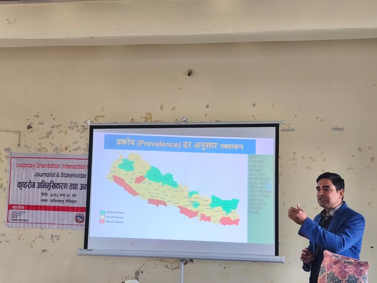 सरकारले १६ वर्षअघि नेपालमा कुष्ठरोग निवारण घोषणा गरे पनि कपिलवस्तु सहित कतिपय जिल्लामा अझै पनि कुष्ठरोगी छन् । विगतको तुलनामा कुष्ठरोगीको संख्यामा केही कमी भने आएको ढकालले बताउनुभयो । अहिले पनि ग्रामीण क्षेत्रमा कुष्ठरोग लागेमा लुकाउने प्रचलन रहेकाले त्यसलाई समयमा उपचार नहुँदा समस्या बढेको भन्दै उहाँले कुष्ठरोगको सङ्का लागेको उपचार गर्न सबैलाई आग्रह गर्नुभयो ।