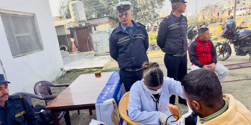 जिल्ला ट्राफिक प्रहरी कार्यालय गोरुसिङ्गे, इलाका प्रहरी कार्यालय पिपरा तथा पिपरा अस्पतालको संयुक्त टोलीले बाणगङ्गाको पिपरा स्थित पूर्व–पश्चिम महेन्द्र राजमार्ग सडकखण्डमा चेकजाँच गरेको थियो । सो क्रममा ५० वटा सार्वजनिक सवारी साधनका चालकको सामान्य स्वास्थ्य परीक्षण तथा टिएचसी किट प्रयोग गरी लागु पदार्थ सेवन जाँच गरिएको थियो ।